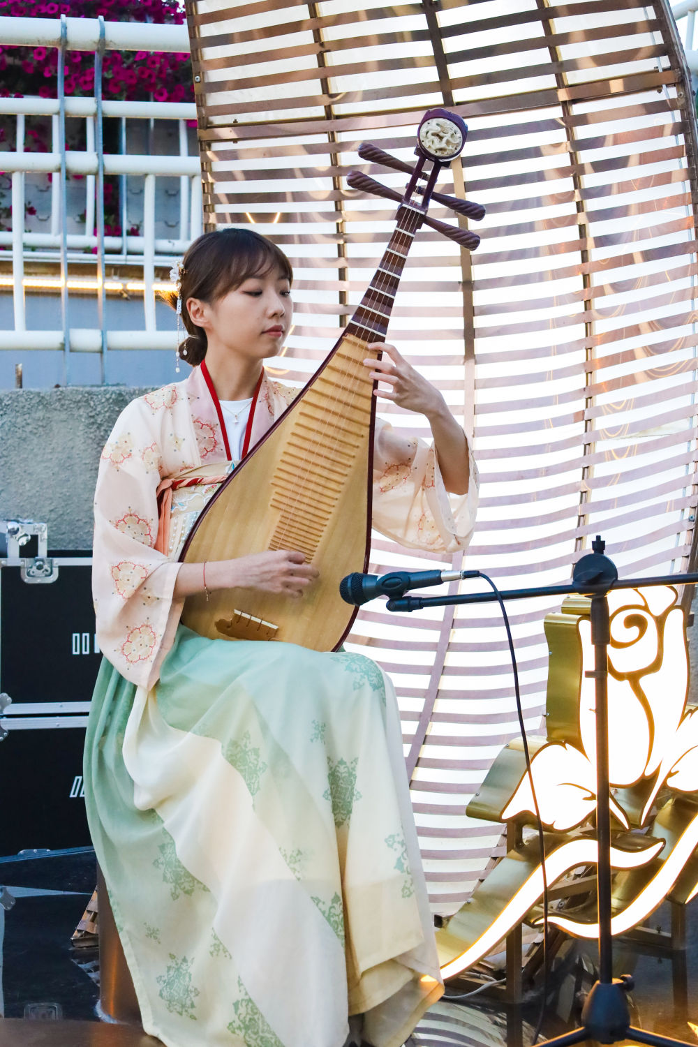 7月3日,在兰州市城关区黄河岸边,演员在黄河之滨百日音乐展演上表演(马希平/摄)