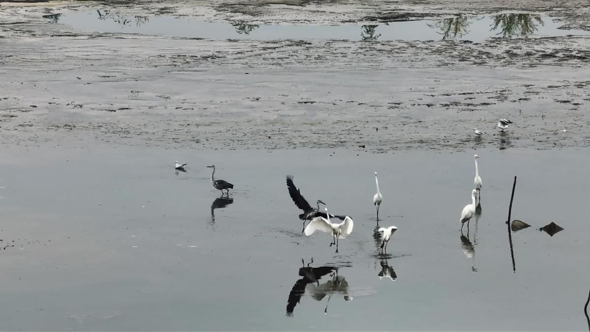 在太极岛,清晨的黄河两岸,薄雾还未散尽,水面像铺了层揉碎的银箔。灰鹤展开修长的翼展,掠过水面时带起细碎的涟漪;红嘴鸥灵动得像跳动的火焰,在波光里翻飞追逐。它们或低空盘旋,或浅水啄食,翅膀扇动的风声、此起彼伏的鸣叫声,与黄河水流的潺潺声交织,成了永靖最鲜活的晨曲。