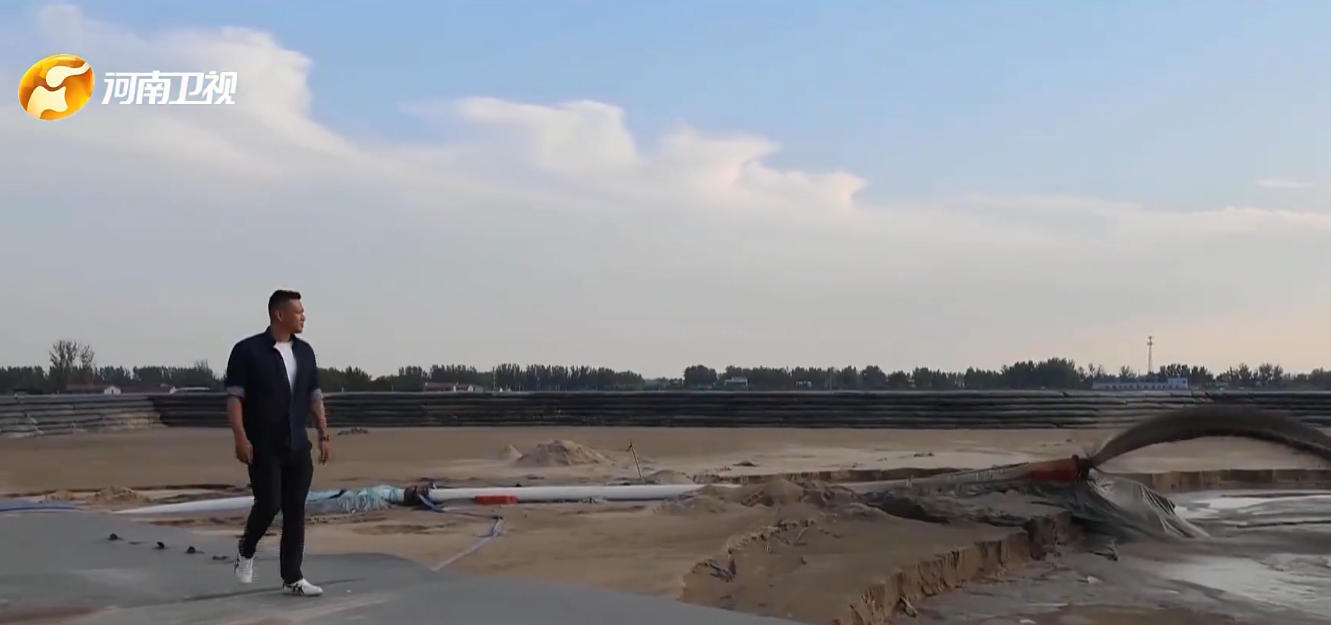 我叫赵辉,是一名“黄河清淤人”。我工作的地方位于黄河中下游河南省商丘市民权县,现在我们看到这个水面正在施工的地方,就是黄河故道一期水生态治理项目工程的施工现场。