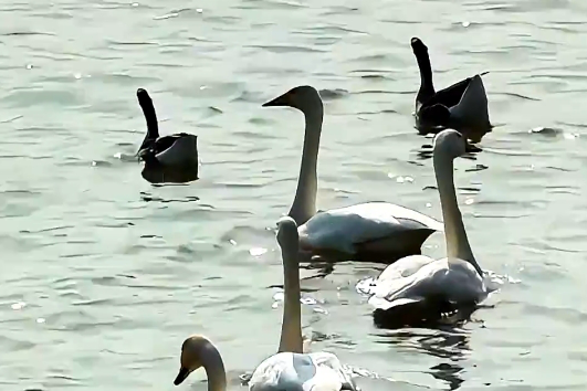 大批天鹅飞抵三门峡黄河湿地 开启越冬生活