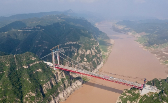 济新黄河大桥,在黄河绝壁上演“穿针引线”