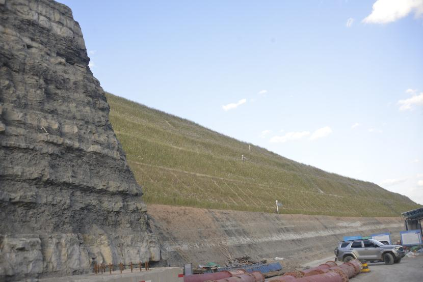 “这里的山体横截面都是硬石头,开凿难度特别大。但这样坚硬的山体在面临风雨侵蚀时却又十分脆弱,如果不做好防护工程,不仅会落石频发,甚至还可能导致滑坡。”项目现场,内蒙古路桥集团S26纳龙高速项目经理刘炜指着纳龙高速两旁的山体说。