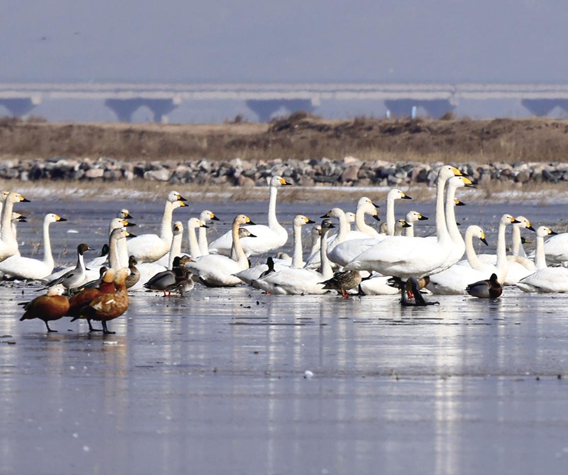 天气日渐回暖,大批北归候鸟飞临黄河“几字弯”逗留栖息。新华社记者 贾立君 摄