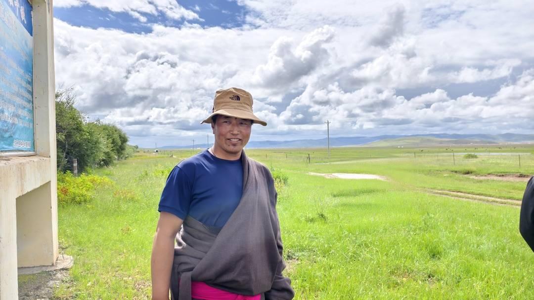 今年59岁的泽让甲是在德香村长大,在参与了家乡的治沙行动,并见证着葱郁草原重新回归后,他成为了当地的一位护林员。巡护在湿地和草原上,防火防盗挖,也提醒游客爱护环境,保护自然。