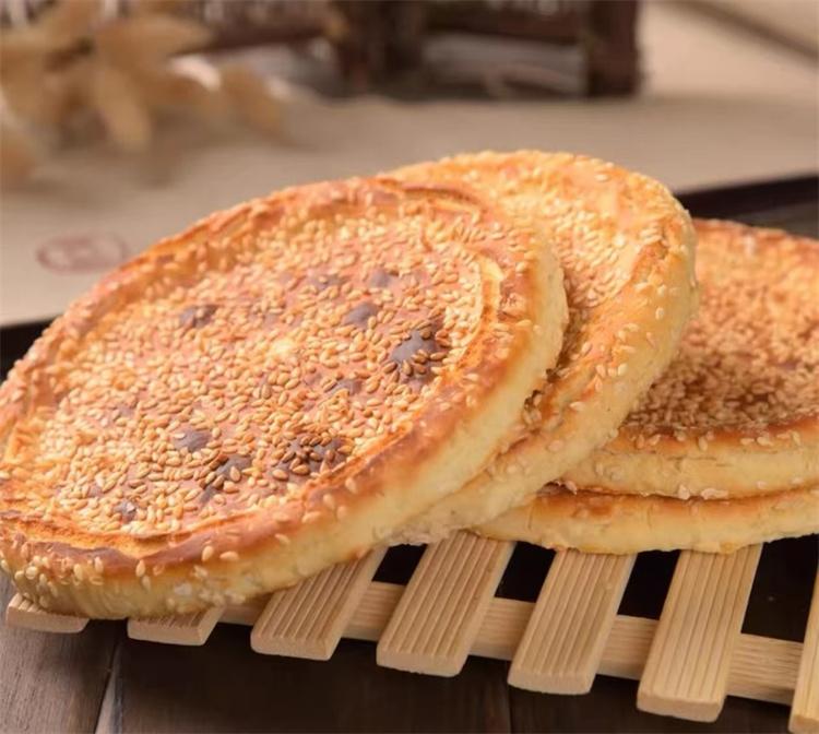 在青龙东门路的俊歧芝麻饼店,店主王俊歧用三十余年的坚守,将这道小吃做成了招牌。只见他熟练地揉捏面团、擀制饼胚、包入酥油,刷上用食用陈醋和白面熬成的搭色液,撒上芝麻,送入烤炉。